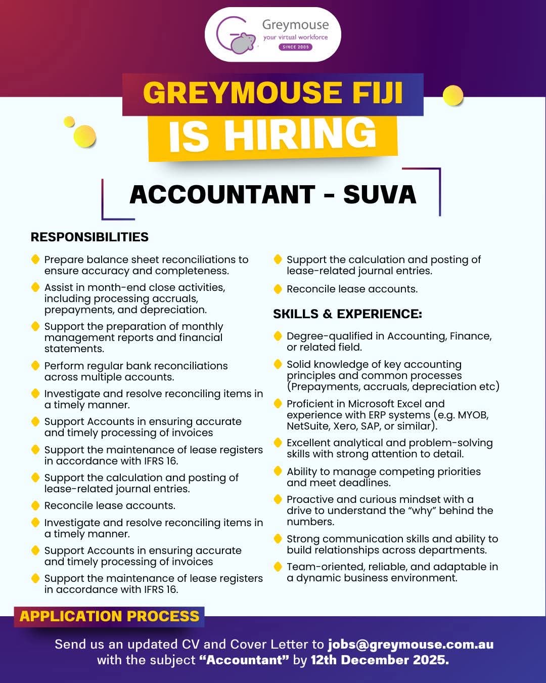 Job Description & Skills/Qualifications Required