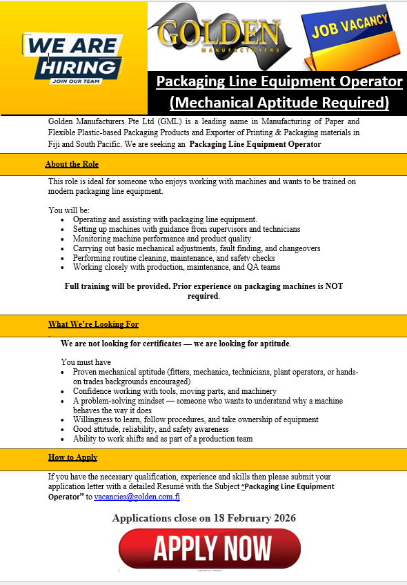 Packaging Line Equipment Operator (Mechanical Aptitude Required)