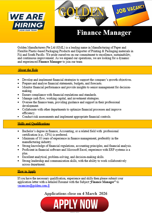 Golden Manufacturers Pte Limited (Golden) is a private company incorporated in Fiji in 1982. Golden is Fiji’s largest manufacturer of Corrugated Cardboard, Packaging and Labels for world renowned companies including but not limited to: - Fiji Water, Star-Kist, Foster Group, Nestle and Coca Cola.