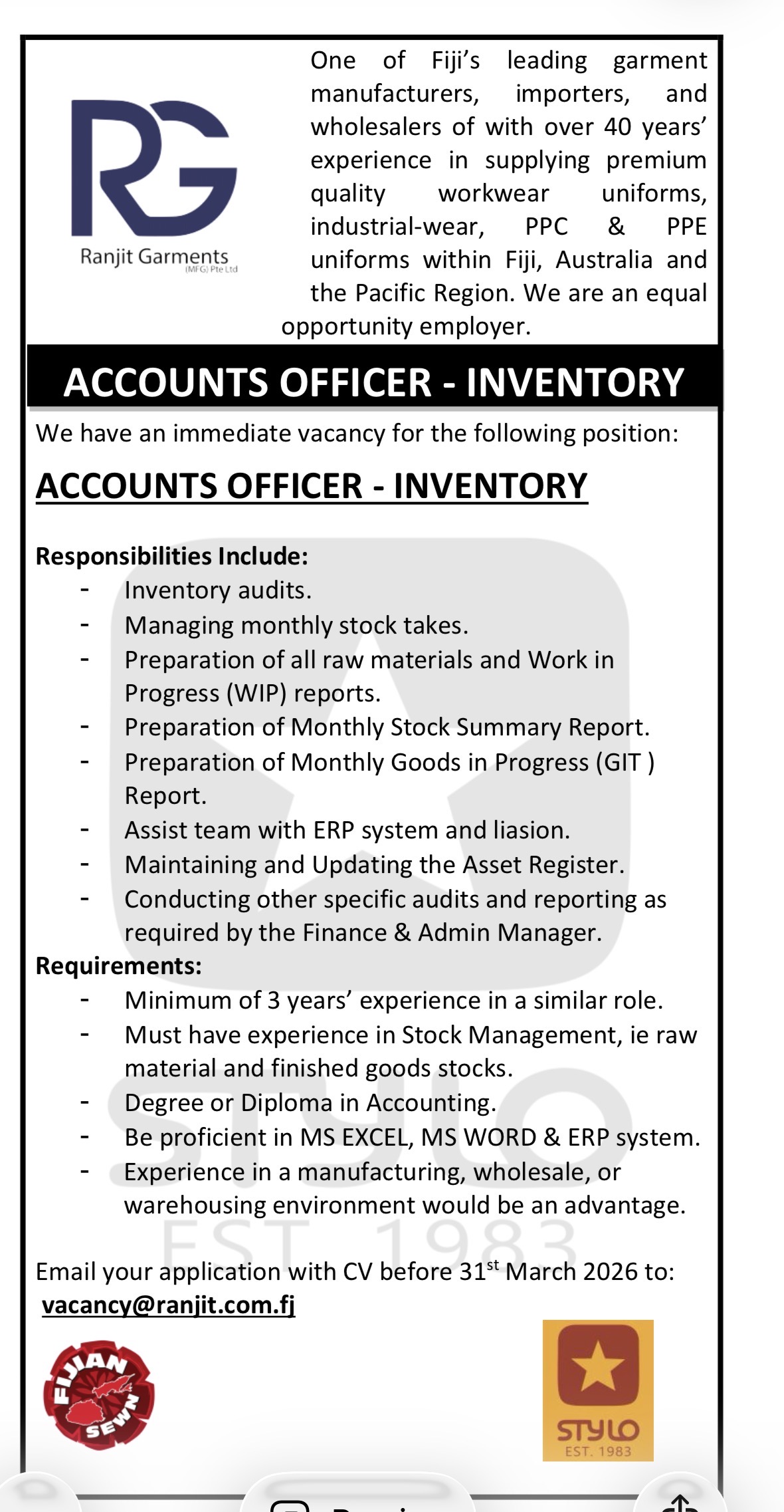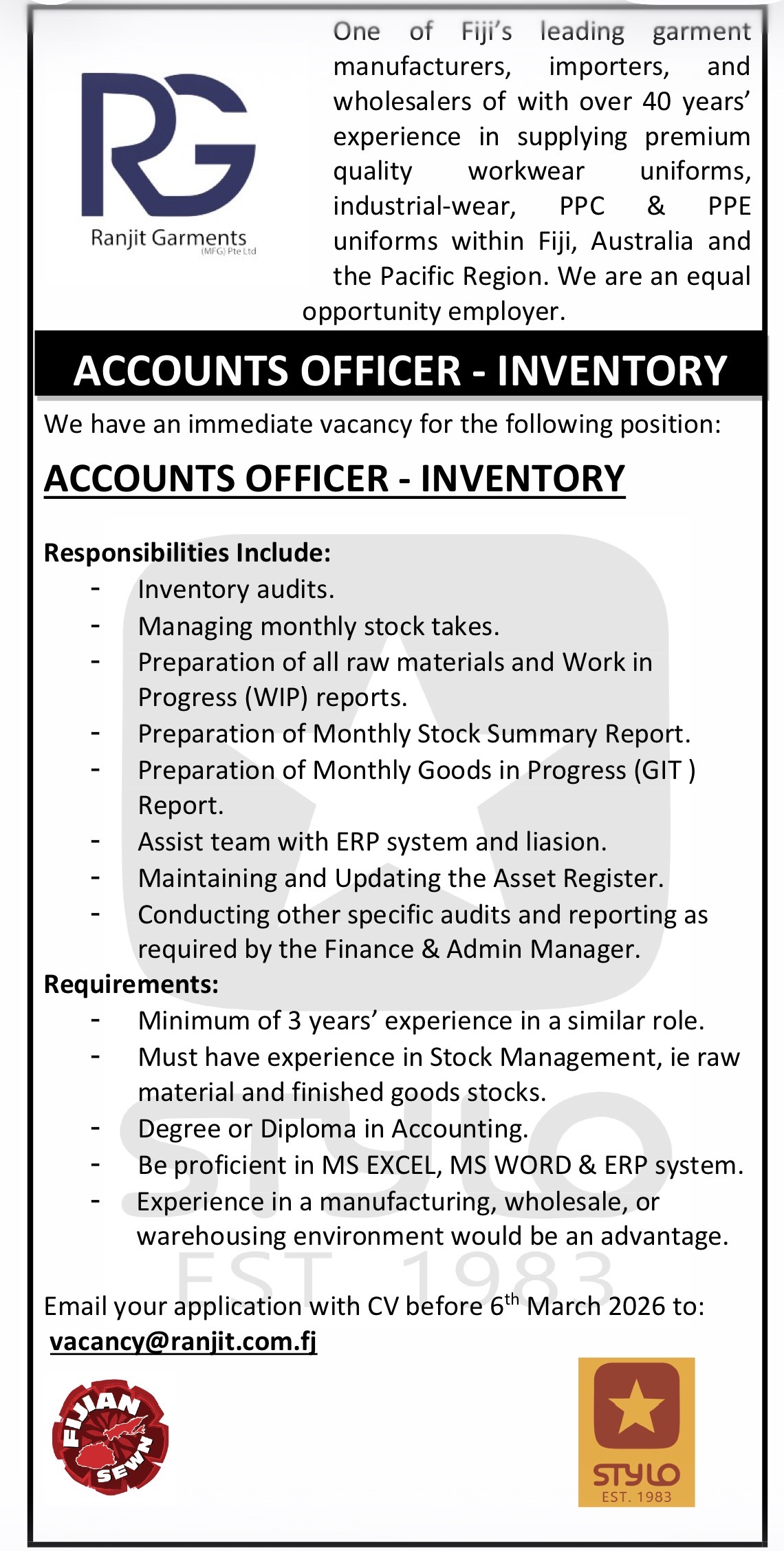 Is a well established and respected Fijian garment manufacturer with over 40 years of experience in high quality workwear and uniforms to the Fiji, Pacific and Exports markets.