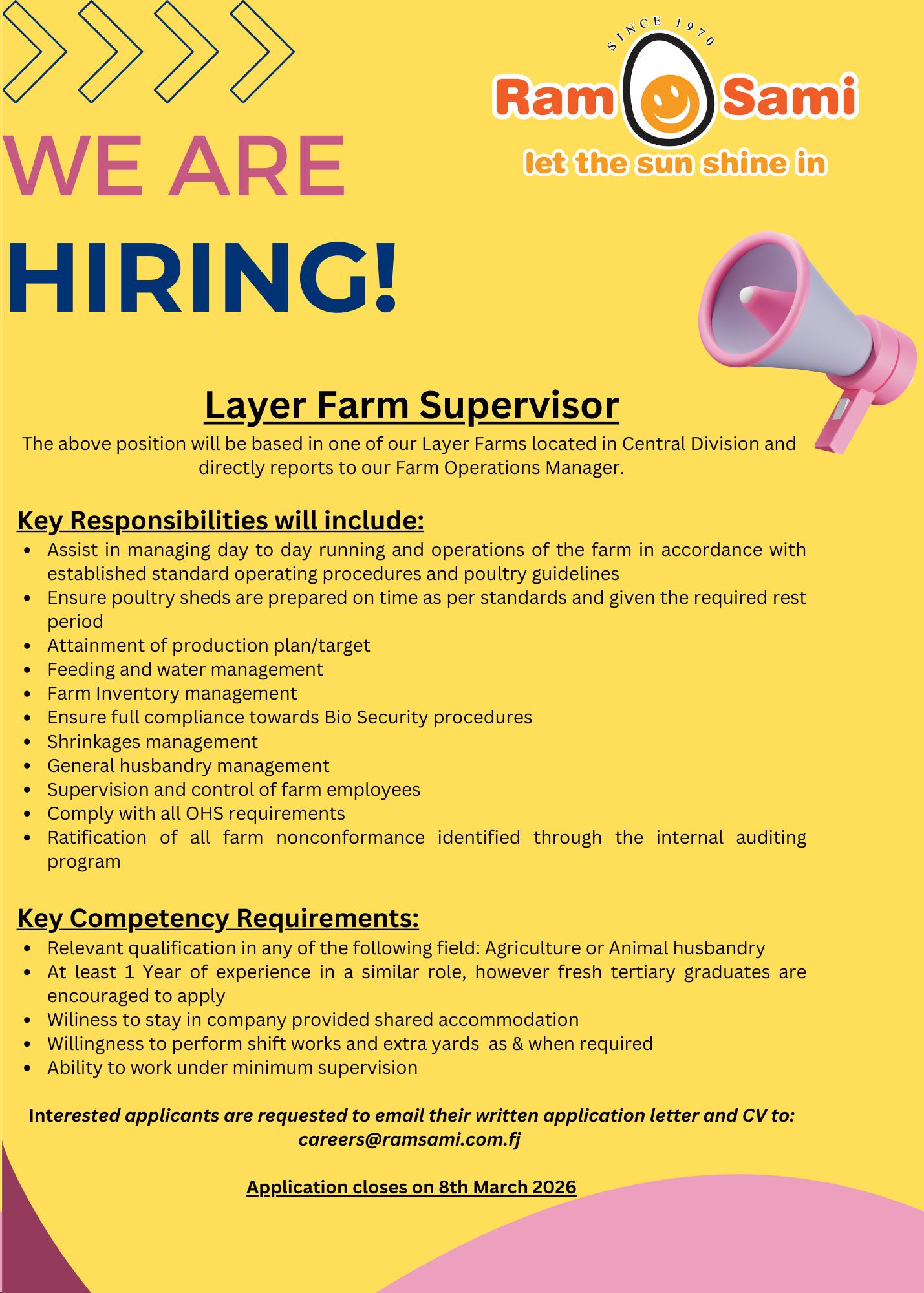 Ram Sami & Sons (Fiji) Pte Limited is a 100% Fiji owned company, specializing in the production, distribution and marketing of the highest quality farm fresh eggs and poultry products in the Fiji Islands