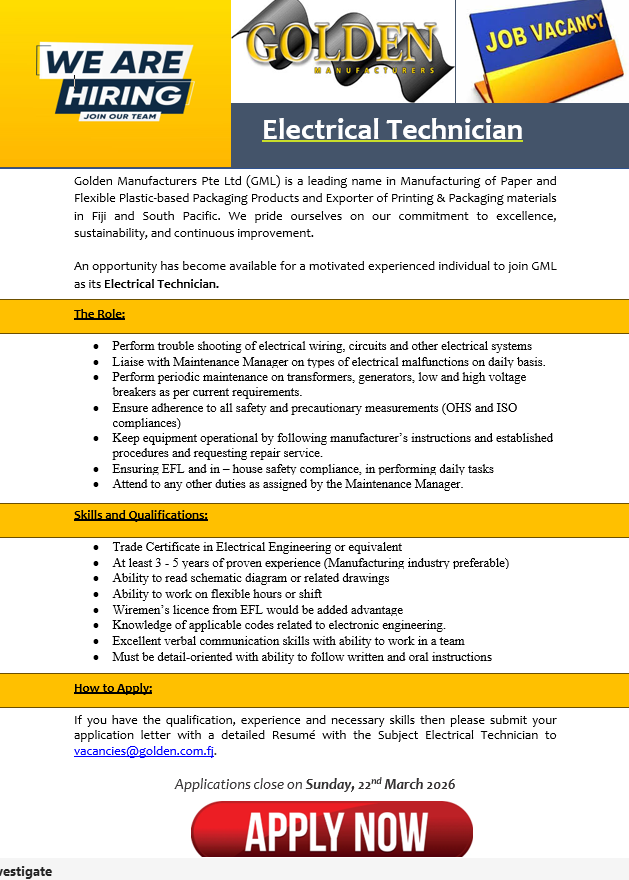 Golden Manufacturers Pte Limited (Golden) is a private company incorporated in Fiji in 1982. Golden is Fiji’s largest manufacturer of Corrugated Cardboard, Packaging and Labels for world renowned companies including but not limited to: - Fiji Water, Star-Kist, Foster Group, Nestle and Coca Cola.
