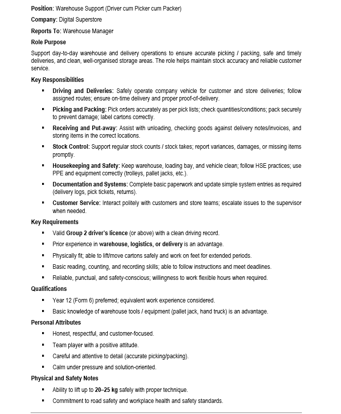 Job Description & Skills/Qualifications Required